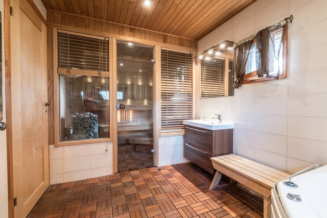 - Hyväkuntoinen sauna, joka on saneerattu v. 2009. Saunassa on ikkuna. Lisäksi pesuhuoneen viereisessä tilassa on infrapunasauna.