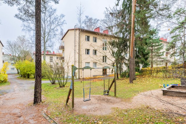 - Puistomaista ympäristöä, puita, istutuksia ja harvaan rakennettuja naapuritaloja.