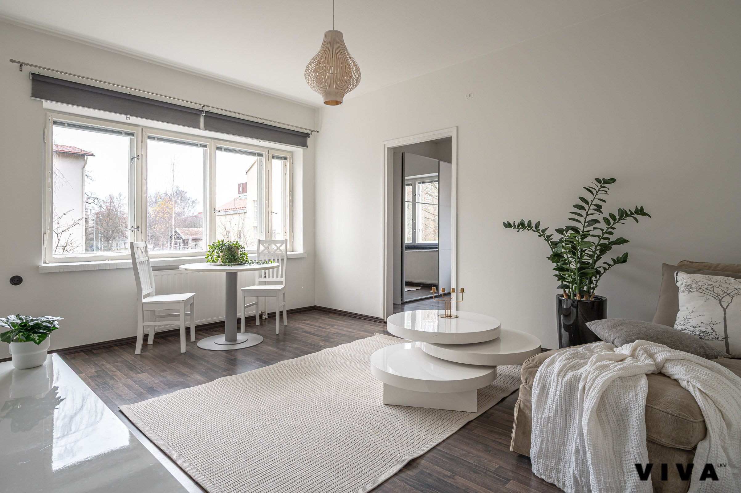 Sijainti Olympiakylässä tekee tästä kodista erityisen. Alue rakennettiin alun perin vuoden 1940 olympialaisia varten, ja sen suunnittelusta vastasivat funktionalismin aikakauden merkittävät arkkitehdit Hilding Ekelund ja Martti Välikangas. Olympiakylä on nykyään yksi Helsingin arvostetuimmista ja kulttuurihistoriallisesti merkittävimmistä asuinalueista. Vehreät pihat, selkeälinjainen arkkitehtuuri ja rauhallinen puistomainen ympäristö luovat tunnelman, jota on vaikea löytää muualta näin lähellä keskustaa. Käpylän alue tunnetaan myös yhteisöllisyydestään ja omaleimaisesta kylämäisyydestään, joka antaa arkeen pehmeän ja kodikkaan rytmin.