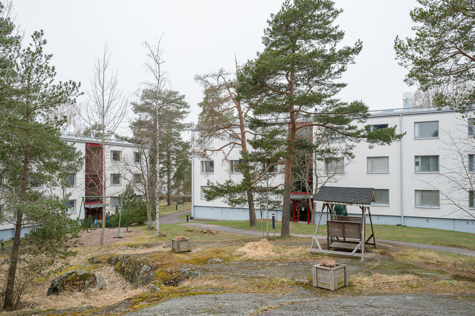 - Pihaportaikkojen ja kaiteiden toteutus 1- ja 2-talon yhteyteen.