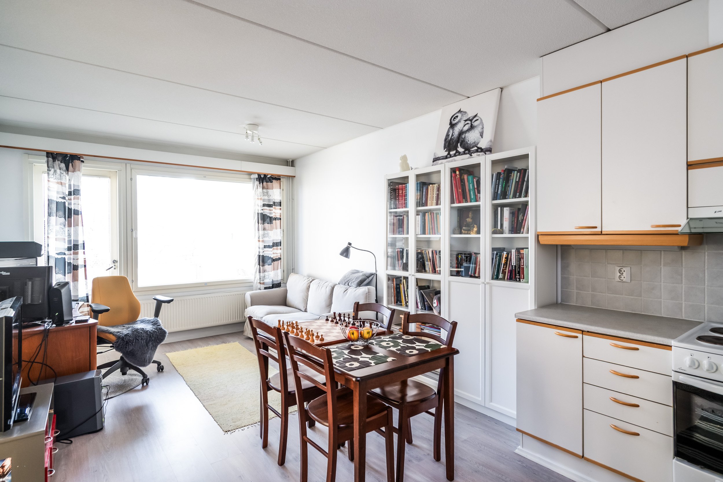 Vuonna 2006 valmistunut asunto on hyvässä kunnossa ja sen 43 neliömetriä on jaettu toimivasti. Avoin keittiö-olohuone yhdistelmä luo tilan tuntua ja luonnonvalo tulvii sisään suurista ikkunoista. Keittiössä on kaikki tarpeellinen, kuten jääkaappi-pakastin ja keraaminen liesi. Makuuhuoneessa on riittävästi säilytystilaa, ja oma sauna tuo arkeen ripauksen luksusta.