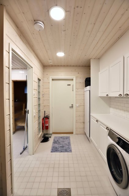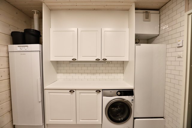 - Lattialämmitys, pesukone, ja kuivauskaappi