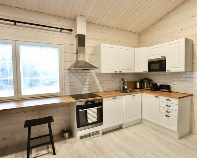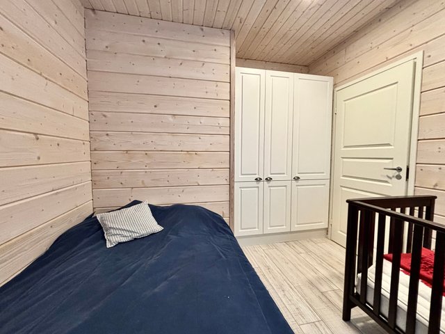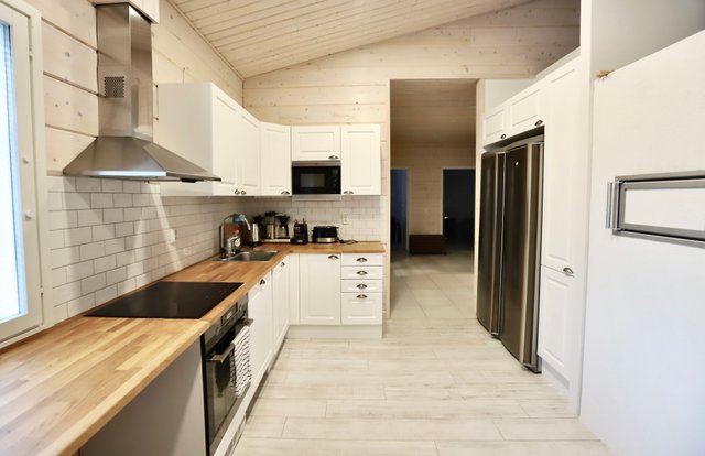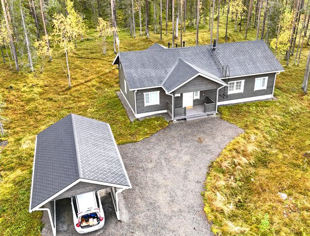 This magnificent holiday home completed in 2017, set in a peaceful location in Äkäslompolo, offers the perfect escape from the hustle and bustle of everyday life. The cottage is single-storey, built to a high standard, and is in excellent condition. This winterized cottage features four bedrooms, a modern kitchen, and a spacious living room with an atmospheric fireplace/bread oven combination that provides both warmth and ambiance. The modern kitchen is fully equipped with all necessary appliances, making cooking effortless. The four bedrooms offer ample space for family or guests.