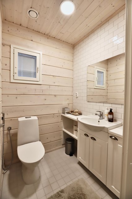 Mökin saunassa voit rentoutua ja nauttia löylyistä pitkän ulkoilupäivän jälkeen. Kodinhoitohuone helpottaa arjen askareita, ja siellä on myös pesukone ja kuivauskaappi. Autokatos ja kaksi ulkovarasto tarjoavat lisää säilytystilaa esimerkiksi harrastusvälineille.