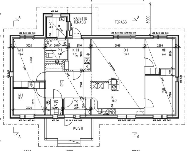- Lisäksi 2 varastoa, molemmat 3,8m2 ja autokatos 22,8m2.