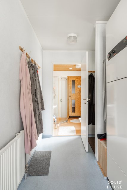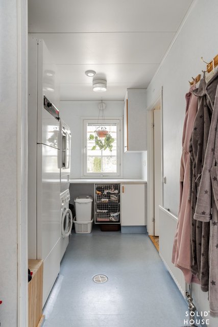 - Tilavassa kodinhoitohuoneessa mukavasti tilaa pyykkihuollolle. Pesukoneliitäntä, ( pesutorni mahtuu ). Seinä: tapetti. Lattia: muovimatto. Käynti suoraan ulos.