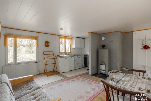 - Irralliset kaapit, sälekaihtimet, verhotangot, naulakko, pyykinpesukone, kuivausrumpu, matontamppausteline, pyykinkuivatusteline, kompostori. Jäteastia kuuluu kauppaan ja se on naapurin kanssa yhteinen,