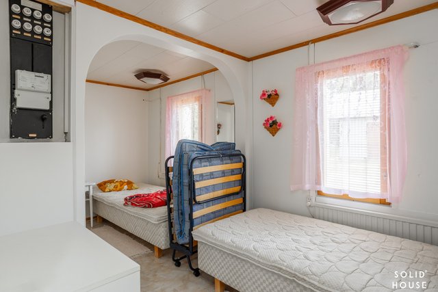 - Kaksi reilunkokoista makuuhuonetta ja yksi pienempi makuuhuone. Seinä: tapetti. Lattia: muovimatto.
