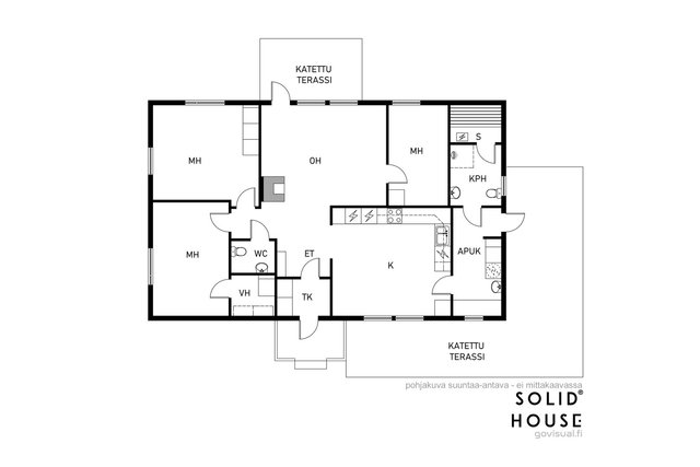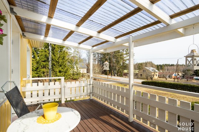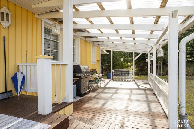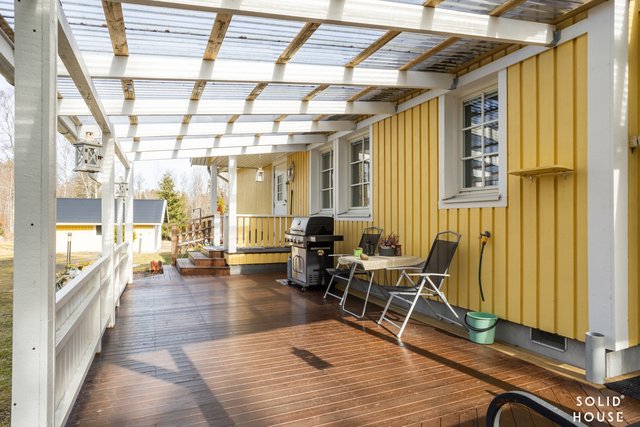 - Terassi talon molemmilla puolilla. Valokatteella katettu.
