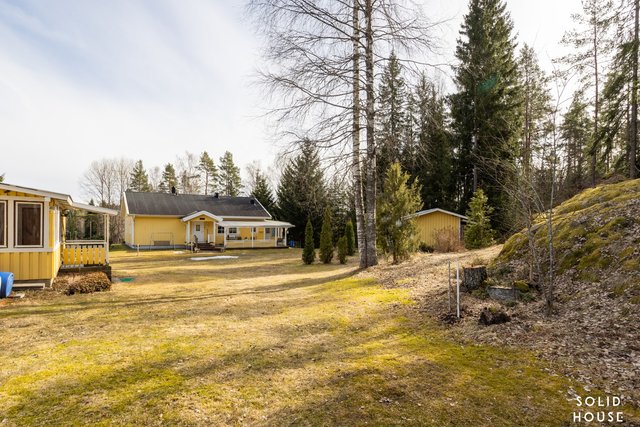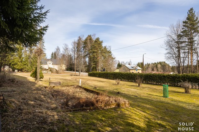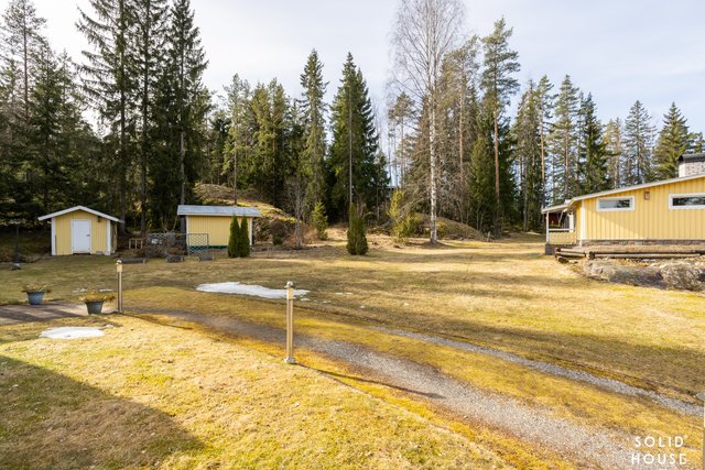 - Koostuu kahdesta tilasta, joiden yhteenlaskettu pinta-ala on 0,7255 ha. Pääosin tasamaata. Etupiha loivasti rinteinen, lampi on naapurin kanssa yhteinen. Lampi keskeltä n. 2-3 m syvä. Molemmilla omat laiturit. Kunnalla kohteeseen etuosto-oikeus, sillä kiinteistön kokonaispinta-ala on yli 5000 m2. .