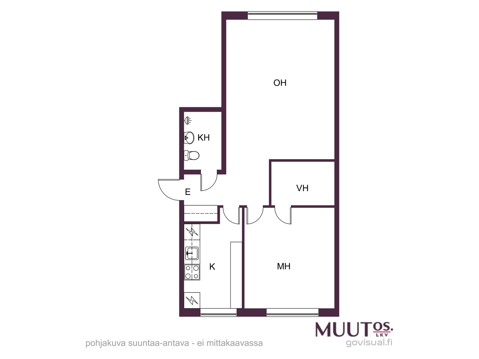- Edellä mainittu pinta-ala saattaa tämän ikäisessä kohteessa poiketa olennaisestikin huoneiston nykyisen ja rakentamisaikaisen mittaustapojen ja standardien mukaan laskettavasta pinta-alasta. Huoneiston todellinen pinta-ala voi olla yhtiöjärjestyksessä, isännöitsijäntodistuksessa ja esitteessä mainittua pienempi tai suurempi. Hinta ei ole pinta-alaperusteinen. Yhtiöjärjestyksen mukainen huoneistoselitelmä: 2h+kk+kh Pohjapiiroksen mukaan asuintilojen pinta-ala on 46 m².