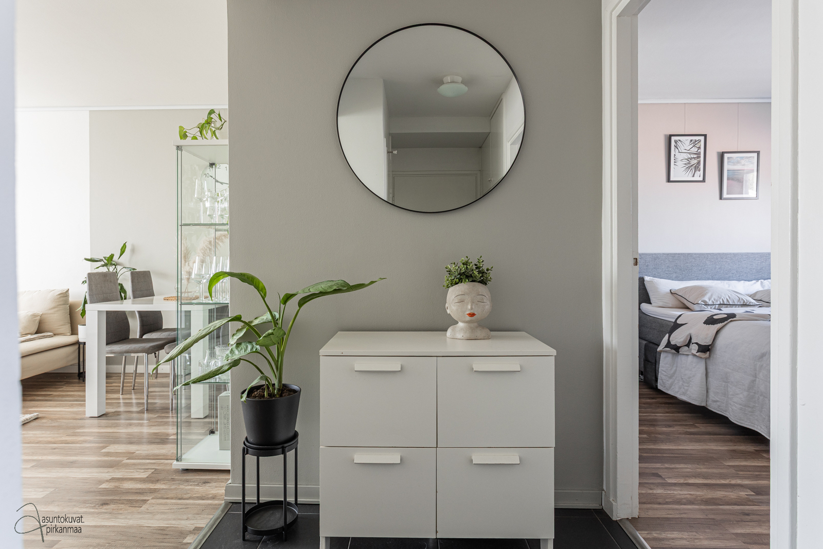 Asunnossa on erittäin toimiva pohjaratkaisu ja kunnoltaan se on täysin muuttovalmis. Siisti keittiö on omana tilanaan ja tilava olohuone tekee tilan toimivaksi niin yksin asuvalle kuin pariskunnallekin. Makuuhuone on reilun kokoinen ja uusi asukas pääsee nauttimaan juuri putkiremontin jäljiltä tuoreesta kylpyhuoneesta!