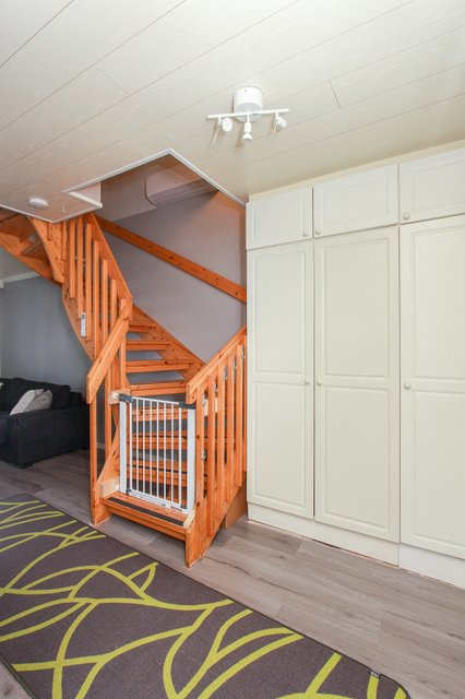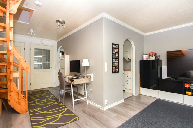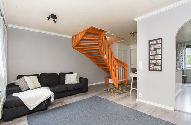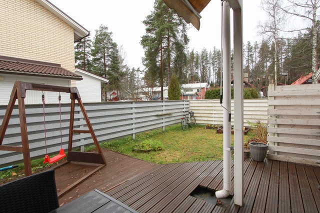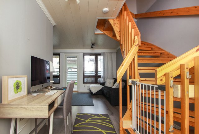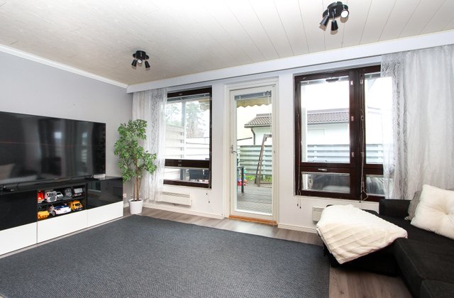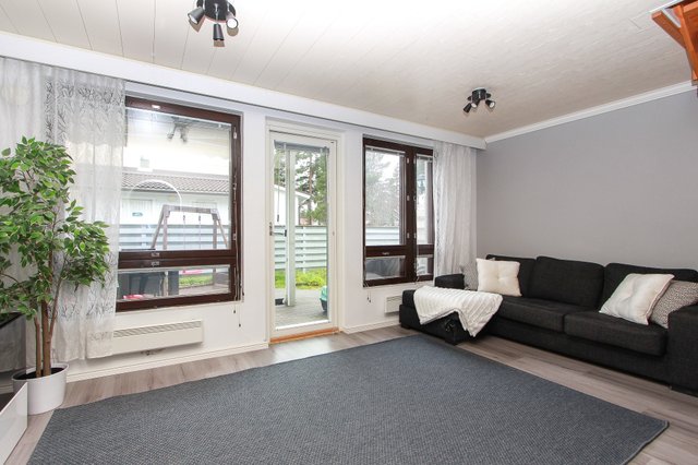 Kaksitasoinen, vuonna 1992 valmistunut rivitalokoti pienehkössä, 5 huoneiston taloyhtiössä. Päätyasunto, jossa reilunkokoinen aidattu piha, oleskelutilat alakerrassa, makuuhuoneet, sauna ja pesutilat yläkerrassa. Autopaikka kahdelle autolle, myös sähköauton latausmahdollisuus.