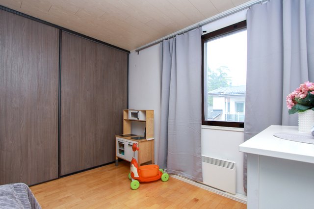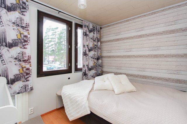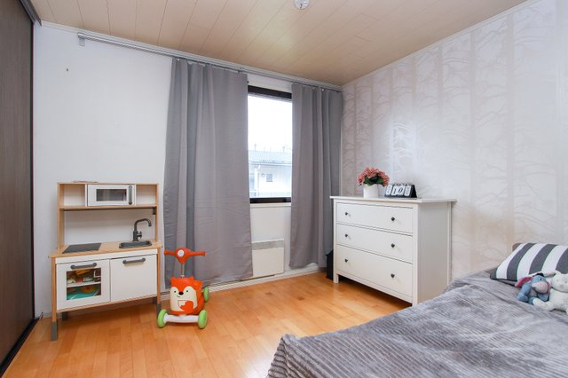 - Seinät tapetti ja maali, lattia parketti. Toisesta makuuhuoneesta käynti parvekkeelle. Säilytystiloina todella tilava vaatehuone.