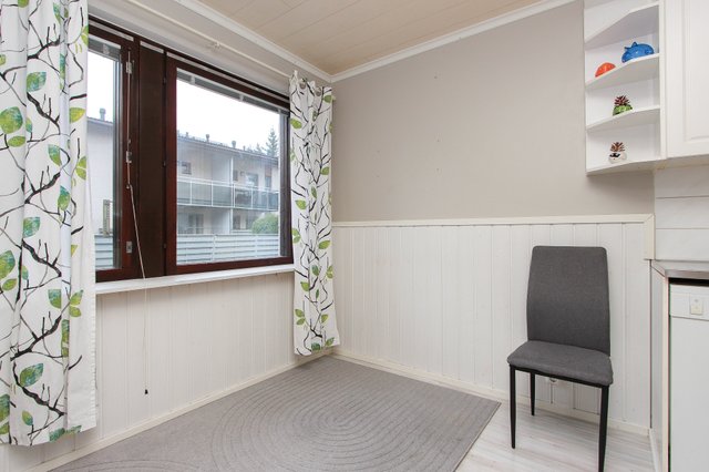 - Seinät maalattu, lattia laminaattia. Olohuoneesta käynti takapihalle.