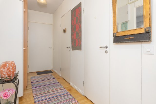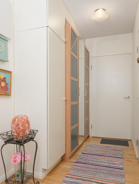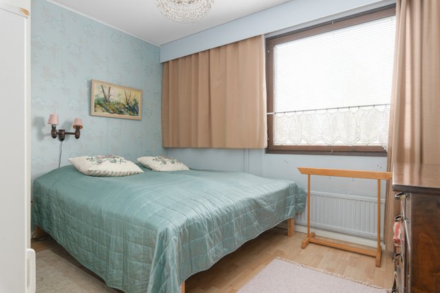 Makuuhuoneita on kaksi, molemmat selkeän muotoisia ja helposti kalustettavia. Säilytystilaa löytyy vaatehuoneen lisäksi huoneistokohtaisesta irtaimistovarastosta. Kylpyhuone on toimiva ja sen yhteydessä on oma sauna - mukava lisä arjen rentoutumiseen. Lisäksi huoneistossa on erillinen WC.