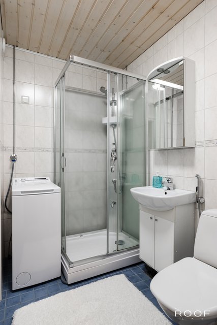 - WC-istuin, suihkukaappi, pesukoneliitäntä, peilikaappi, ja bidee-suihku