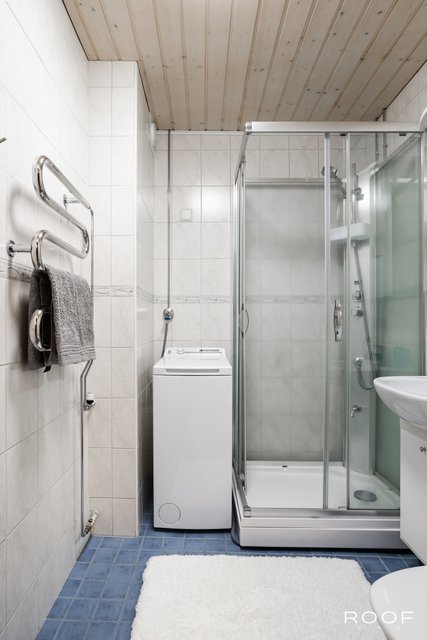 - Kylpyhuone on tilansa puolesta miellyttävän kokoinen ja toimiva. Ratkaisut ovat selkeät ja arjessa käytännölliset, joten tila on helppo pitää siistinä.