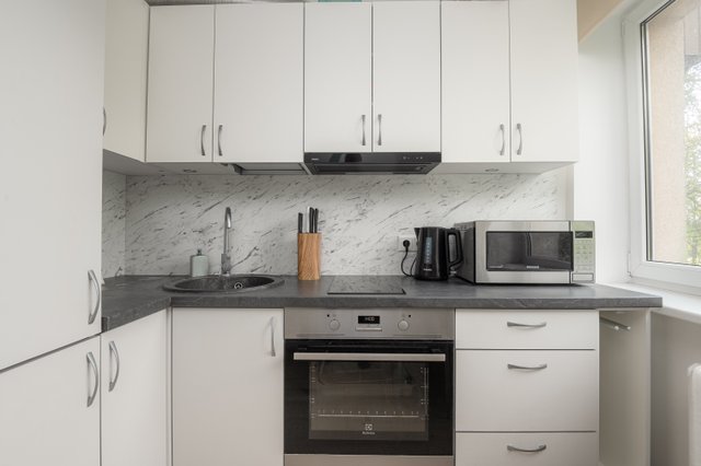 - Jääkaappi, liesituuletin, liesi, ja uuni