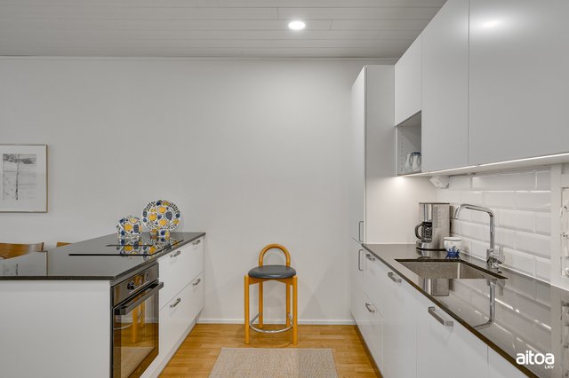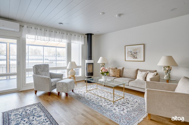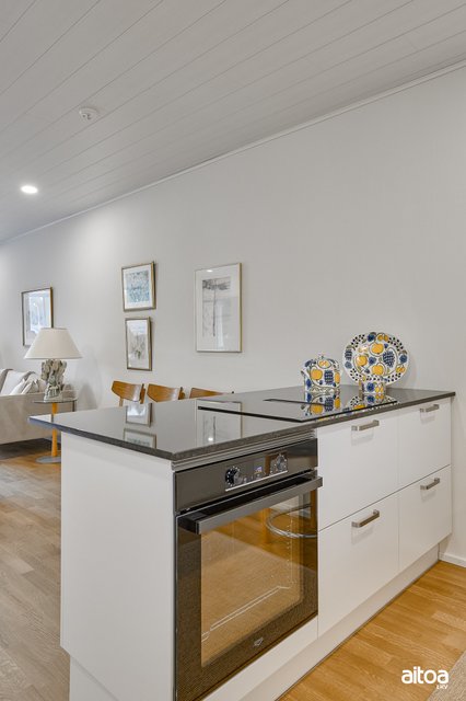 2022 valmistunut koti tarjoaa nykyajan mukavuutta ja tyylikästä asumista. Ajattomat valinnat tekevät asunnosta katsetta kestävän vuosikymmeniksi. Tilavassa ja valoisassa olohuoneessa on erikoisvarusteluna kevyt takka ja ilmalämpöpumppu, jotka lisäävät asumismukavuutta kaikkiin vuodenaikoihin. Laadukas ja hyvin varusteltu keittiö kivitasoin ja integroiduilla kodinkoneilla tekee ruoanlaitosta nautinnon.