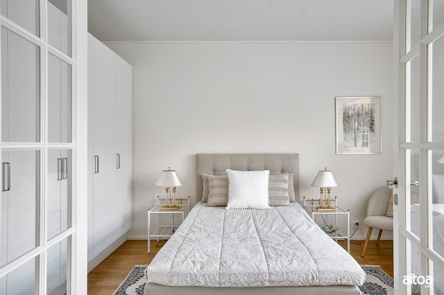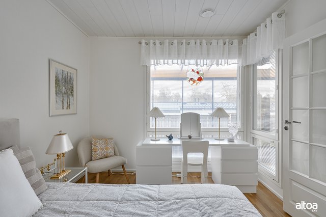 - Päämakuuhuoneessa lasiset pariovet.