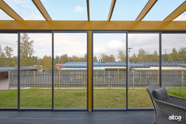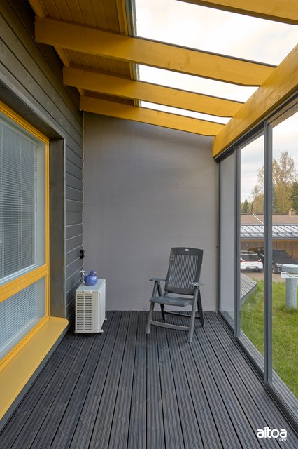 - Lasitettu terassi, jossa vesiposti (jäätymätön hana), jolla voi pestä terassin ja kastella kasvit.
