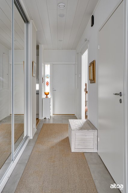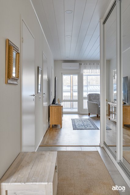 - Eteisessä: laattalattia, seinät tapetti/maali, peililiukuovet.