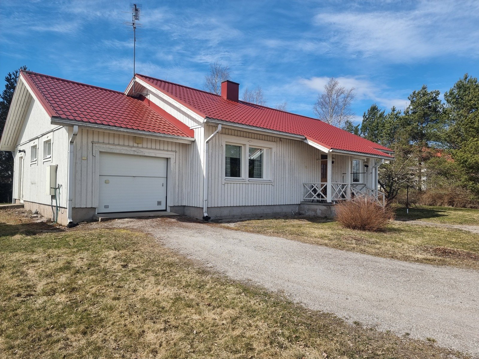 Yksitasoinen omakotitalo käytännöillisin tiloin maaseudulla
