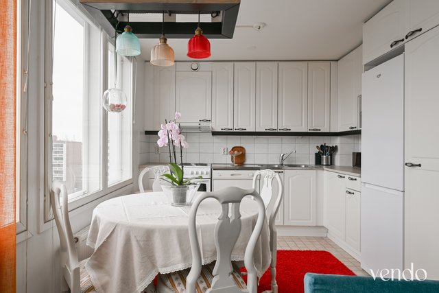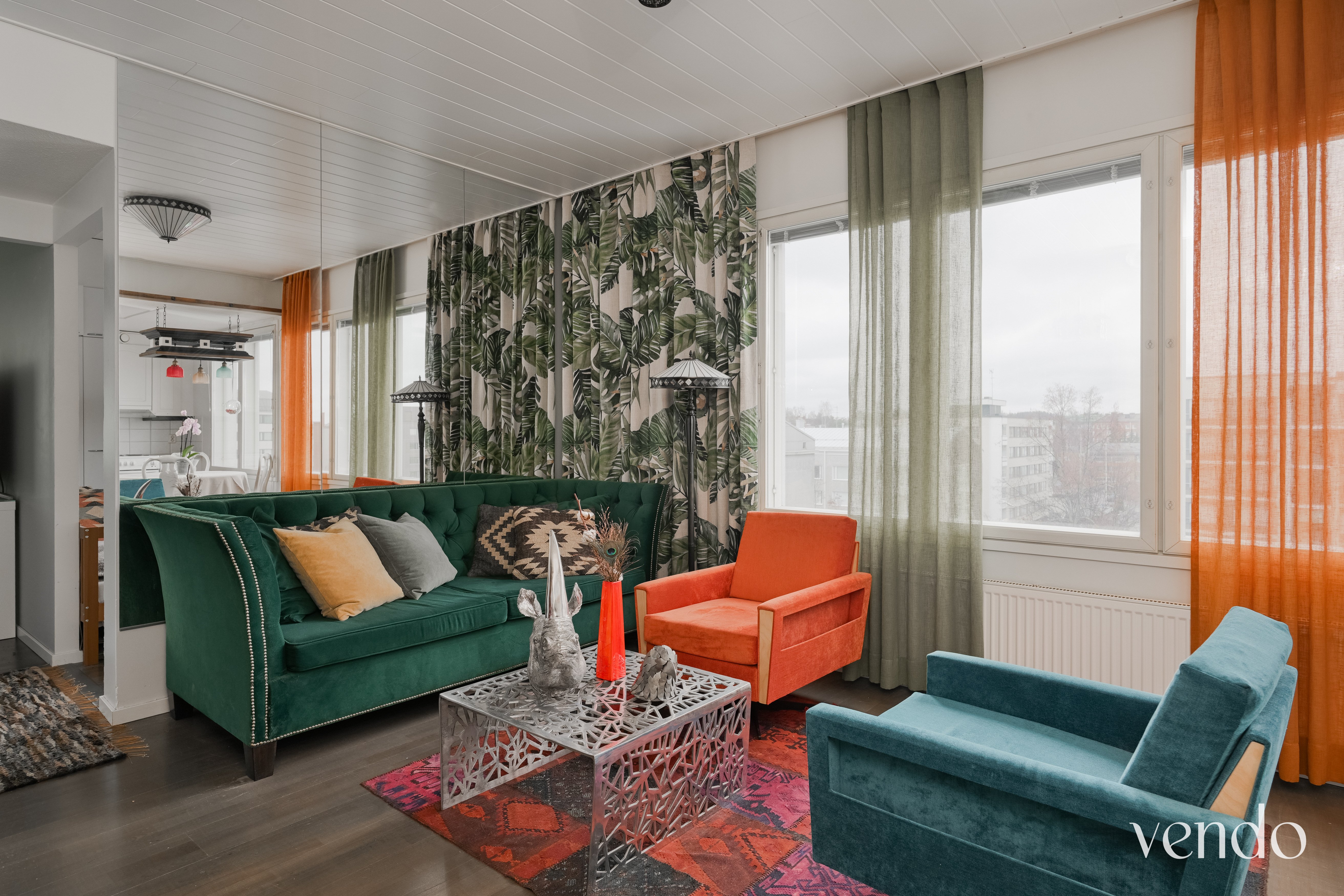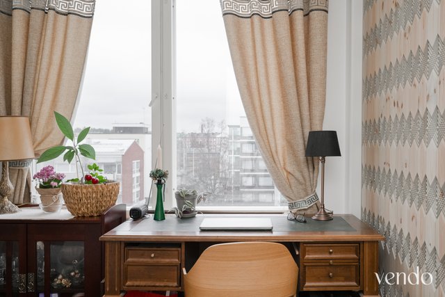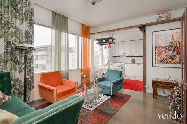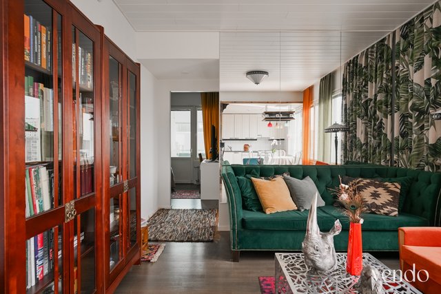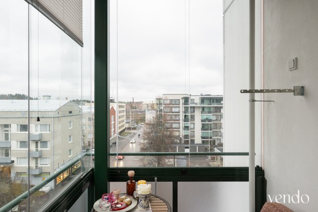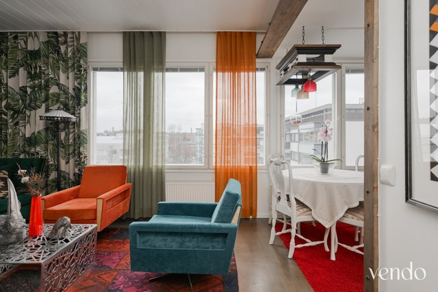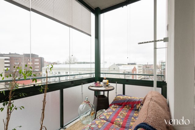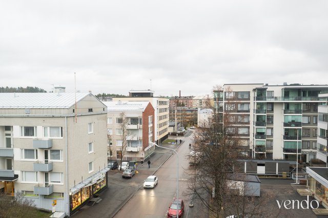 Väinönkadulla, Jyväskylän keskustassa, sijaitsee tämä saunallinen kolmio. Asunnon 58 m² on käytetty tehokkaasti. Huoneisto sijaitsee hissillisen talon viidennessä kerroksessa ja ikkunoista sekä lasitetulta parvekkeelta on avarat näkymät Sammonkadun suuntaan. Asunto on pintaremontoitu kekseliäästi ja on siistikuntoinen ja valoisa.