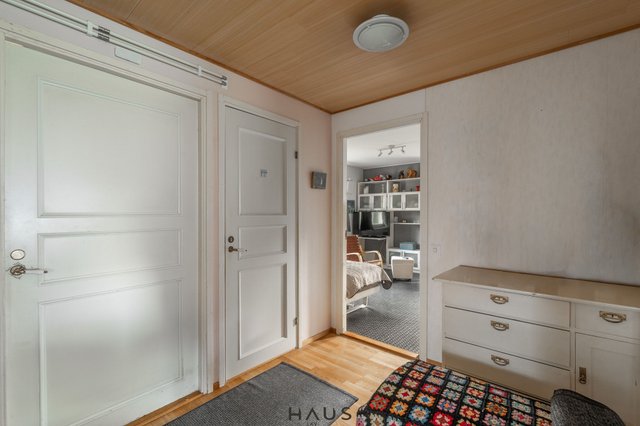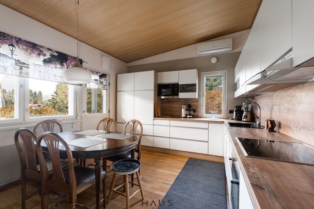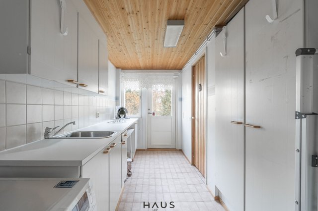 Talo on rakennettu 1980-luvun lopulla, ja siitä on pidetty vuosien varrella hyvää huolta. Kodissa on kaksi makuuhuonetta, tilava ja valoisa olohuone sekä hiljattain remontoitu, tyylikäs keittiö, jossa on tilaa niin arjen kokkailuun kuin yhdessäoloonkin. Käytännöllisyyttä arkeen tuovat kodinhoitohuone, kylpyhuone ja sauna, sekä kaksi erillistä wc:tä.