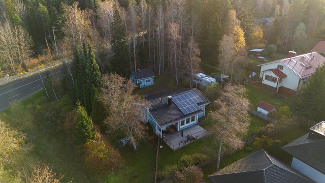 Lämmitysjärjestelmänä toimii sähkölämmitys, jota tukevat ilmalämpöpumppu sekä varaava takka/leivinuuni – näiden avulla kodin lämmityskulut pysyvät maltillisina. Lisäksi katolle on asennettu 18 aurinkopaneelia, joiden vuosituotto on ollut noin 4000–5000 kWh, mikä tekee kodista entistä energiatehokkaamman.