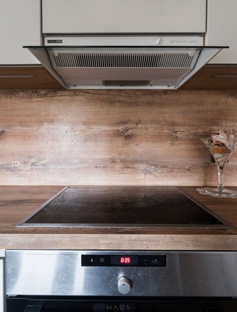 - Erillisuuni (integroitu), liesi (integroitu), liesituuletin, jääkaappi (integroitu), erillinen pakastin (integroitu), mikroaaltouuni (integroitu), ja astianpesukone (integroitu)