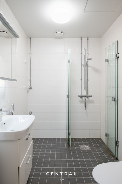 - WC-istuin, suihku, suihkuseinä, suihkukaappi, ja pesukoneliitäntä