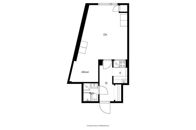 - Pinta-ala ei ole tarkistusmitattu. Edellä mainittu pinta-ala saattaa tämän ikäisessä kohteessa poiketa olennaisestikin huoneiston nykyisten mittaustapojen ja standardien mukaan laskettavasta pinta-alasta. Huoneiston todellinen asuinpinta-ala voi siis olla yhtiöjärjestyksessä, isännöitsijäntodistuksessa ja myyntiesitteessä mainittua pienempi tai suurempi.