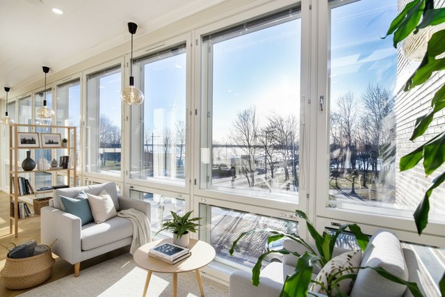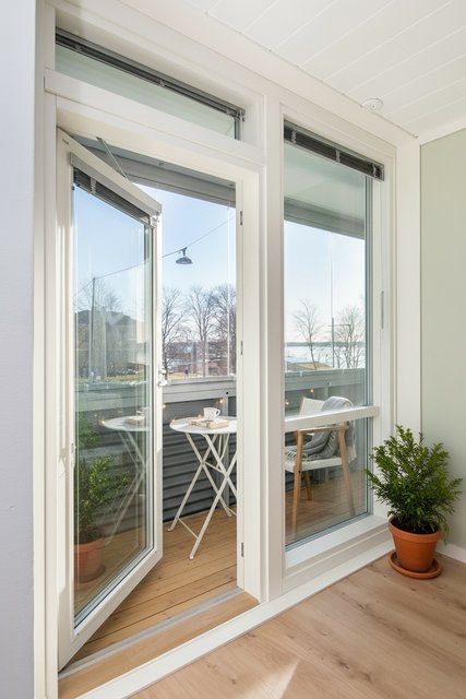 Badrummet och den separata toaletten är inredda med högkvalitativa material, såsom Puustell-möbler och Tapwell-blandare. Digital golvvärme ger extra komfort i vardagen. Den inglasade balkongen erbjuder en lugn plats att njuta av naturen.