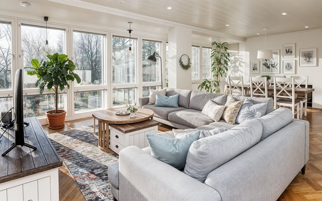 Hjärtat i lägenheten är ett totalrenoverat kök med moderna AEG-apparater, såsom induktionshäll och SteamBake-ugn, som gör matlagningen till ett nöje. I det rymliga vardagsrummet skapar vacker fiskbensparkett och extra belysning en elegant atmosfär, samt fönster från golv till tak med utsikt över bron och havet. Tre sovrum erbjuder gott om utrymme och förvaringslösningar, såsom skjutdörrsskåp.
