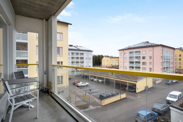 Keittiö on varustettu nykyaikaisin kodinkonein, kuten jääkaappipakastimella, astianpesukoneella ja keraamisella liedellä. Kylpyhuoneessa on lattialämmitys ja tilavaraus pesukoneelle. Asunnossa on myös tilava parveke, jossa voit nauttia aamukahvisi rauhallisessa ympäristössä.