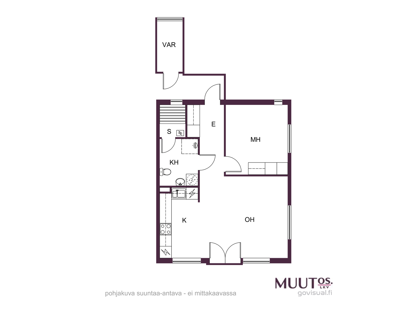 - Huoneiston todellinen pinta-ala voi olla yhtiöjärjestyksessä, isännöitsijäntodistuksessa ja esitteessä mainittua pienempi tai suurempi. Hinta ei ole pinta-alaperusteinen. Eri mittaustapojen vuoksi varaston pinta-ala saattaa sisältyä asuintilojen pinta-alaan. Yhtiöjärjestyksen mukainen huoneistoselitelmä: 2h+k+s