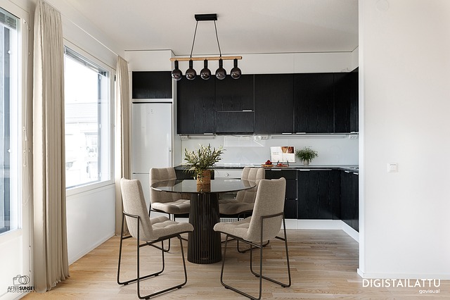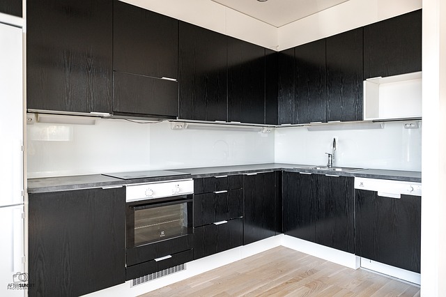 - Keittiön kaapin ovet alkuperäinen väri valkoinen, päällä irrotettava musta kalvo.
