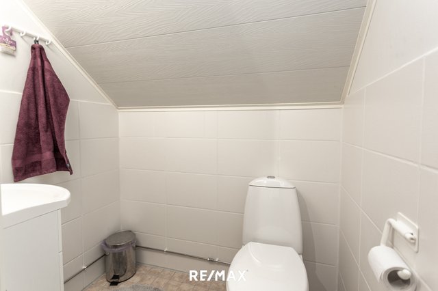 - Yläkerrassa lisäksi WC, pesuallas, bidee-suihku, allaskaappi ja peili.