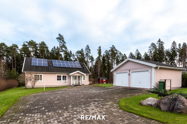 Huoneet: 5h, keittiö, sauna, kylpyhuone, kaksi erillistä WC:tä ja kodinhoitohuone.