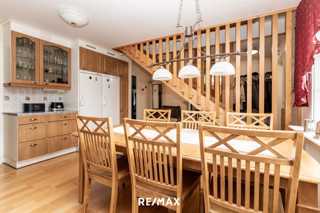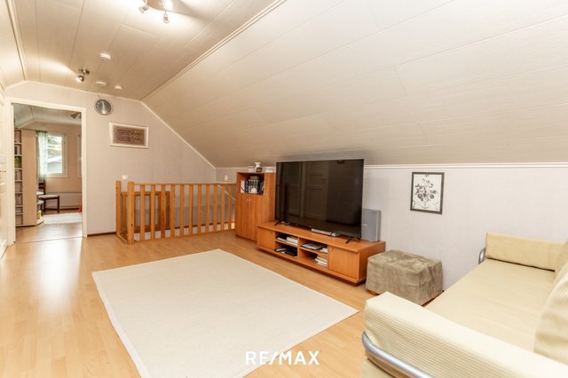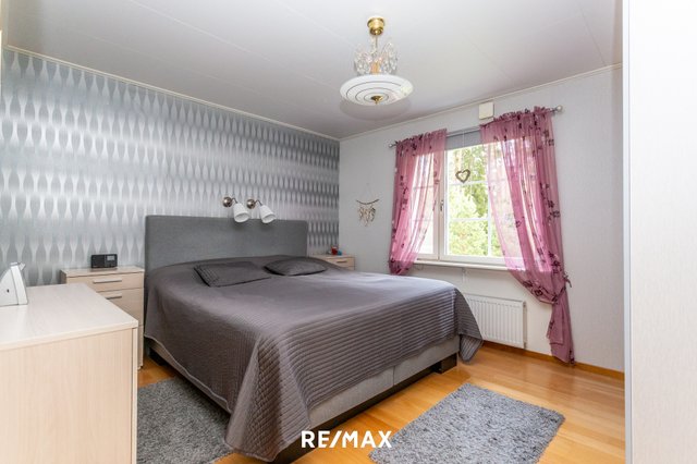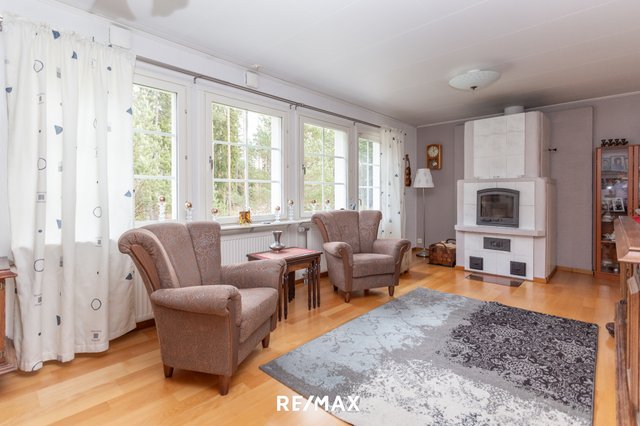 Tässä kodissa neliöt on käytetty viisaasti. Olohuoneessa on suuri paikoillaan muurattu takka, joka osaltaan säästää lämmityskustannuksissa ja keittiö on tilava, neljä makuuhuonetta mahdollistavat oman rauhan niin lapsille, vieraille kuin etätyöskentelyynkin.