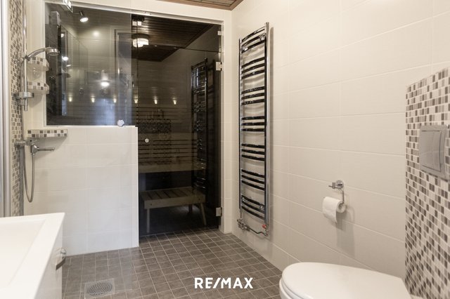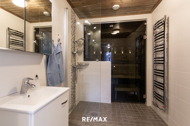 Arjen sujuvuuden takaa tilava kodinhoitohuone omalla sisäänkäynnillä – täydellinen ratkaisu lapsiperheen tai koiratalouden tarpeisiin. Saunosaston lempeät löylyt tarjoavat rentoutumista kiireisen päivän päätteeksi.