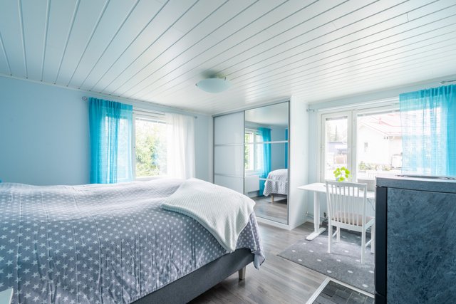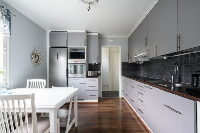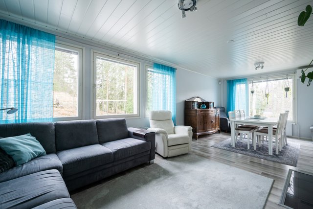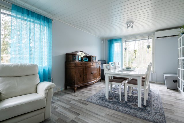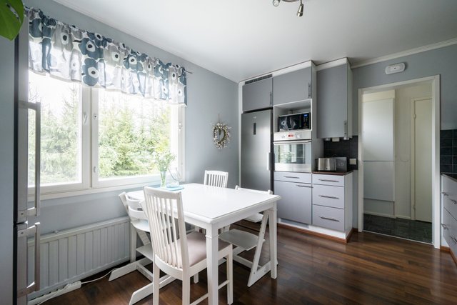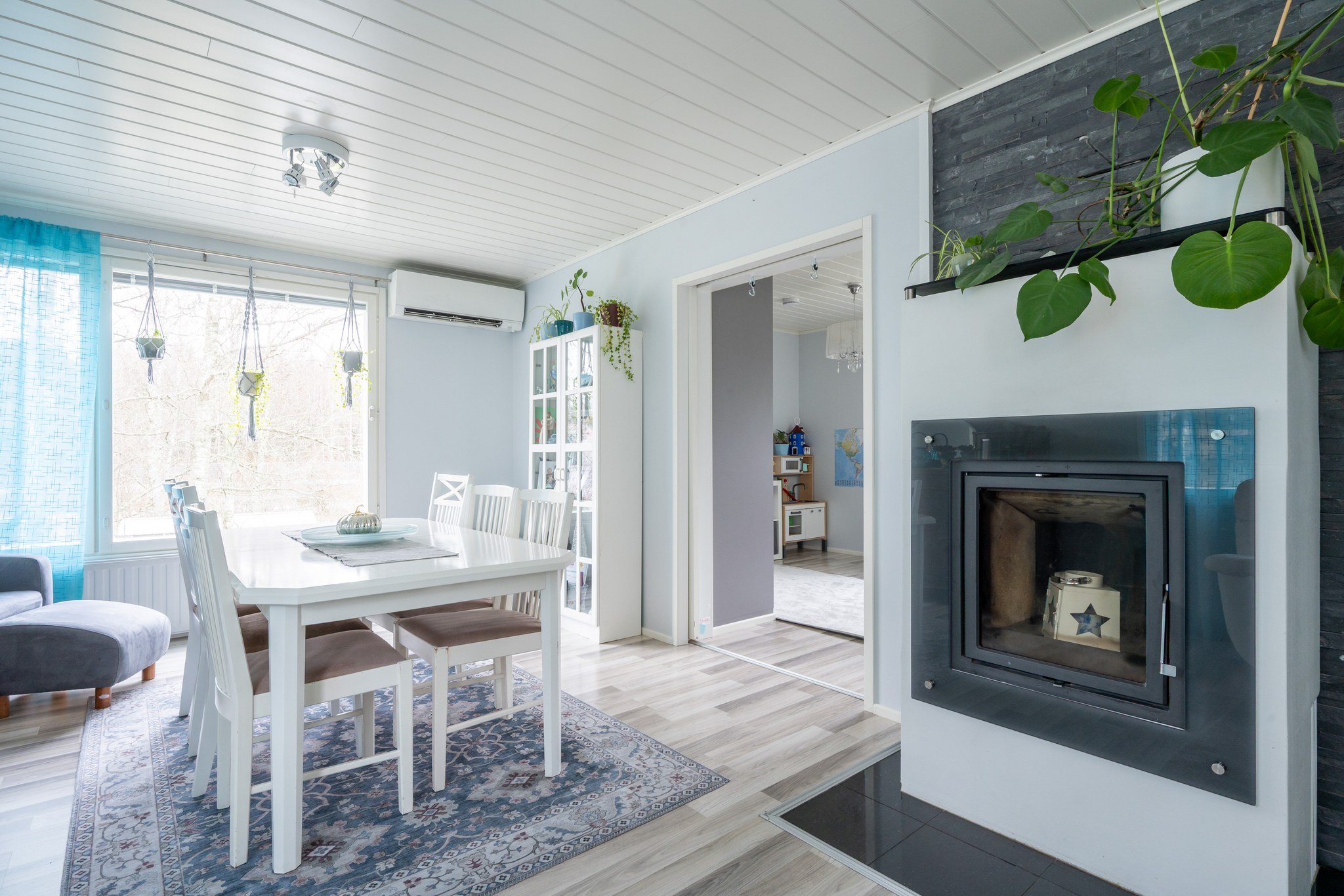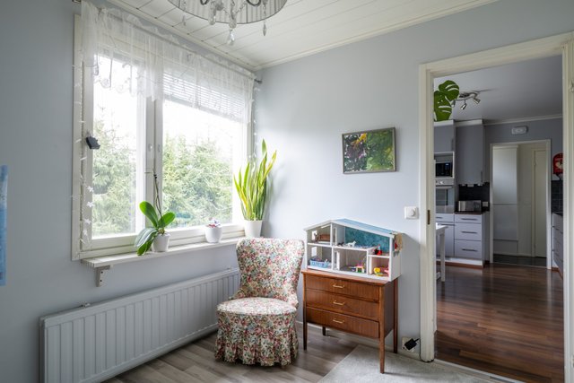 Talon keskipiste on tilava keittiö, jossa on runsaasti säilytystilaa ja kaikki sujuvaan arkeen tarvittavat varusteet käden ulottuvilla. Olohuoneessa takka luo lämpöä ja tunnelmaa ja suuret ikkunat valaisevat koko tilan kauniisti. Makuuhuoneita on kolme ja niiden nykyaikaiset ja raikkaat pinnat tekevät niistä kodikkaita ja nykyaikaisia.