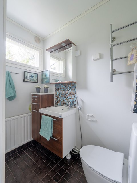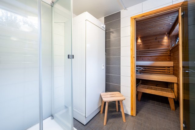 Saunassa pääset nauttimaan perinteisistä puukiukaan löylyistä ja kaksi erillistä WC:tä tuo arkeen käytännöllisyyttä. Arjen sujuvuutta helpottavat myös vaatehuone ja autotalli, jotka tarjoavat käytännölliset säilytysmahdollisuudet.
