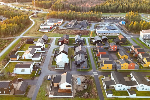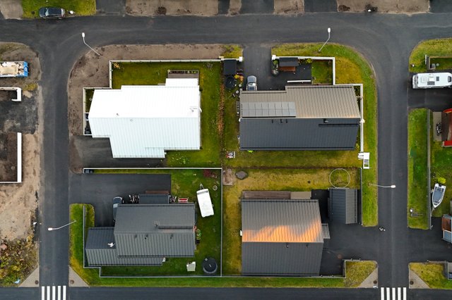 Helppohoitoinen tontti on valmiiksi aidattu ja pihat nurmella ja asfaltilla.