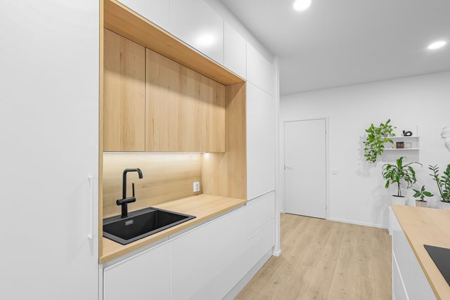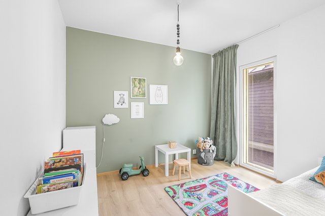 - Keittiössä Topi-kalusteet ja integroidut kodinkoneet. Aamiaiskaappi lisää käytännöllisyyttä.