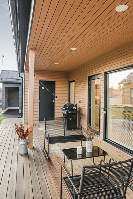 - Terassin yhteydessä erillinen lämmin varasto ( 8,5 m2 )