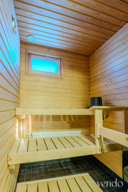 Oma sauna tarjoaa rentouttavia hetkiä arjen keskellä. Asunnossa on myös ranskalainen parveke ja viihtyisä terassi, jotka kutsuvat nauttimaan ulkoilmasta.