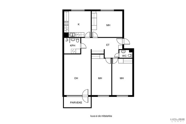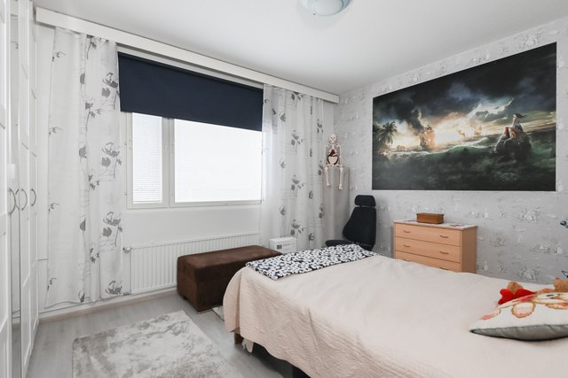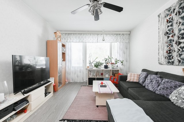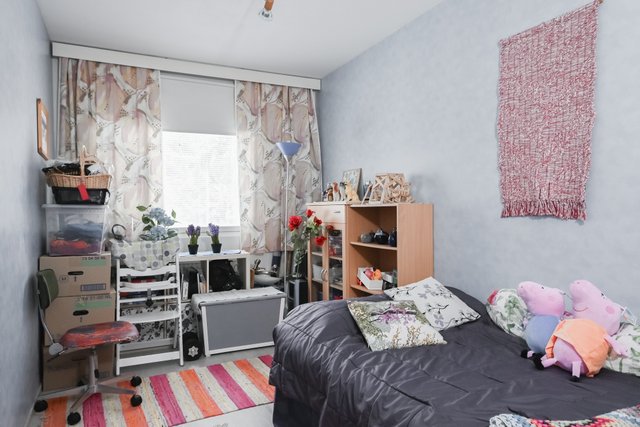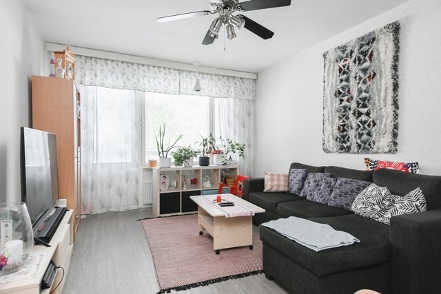 Tämä 93 neliön asunto sijaitsee vuonna 1977 valmistuneen talon ensimmäisessä kerroksessa. Asunnossa on kolme makuuhuonetta, tilava olohuone sekä lasitettu parveke. Kylpyhuoneesta löytyy kaikki tarvittava kuten pesukoneliitäntä, sekä asunnossa on myös erillinen wc. Asukkaille on tarjolla monipuoliset yhteiset tilat, kuten sauna.